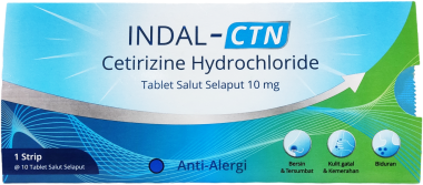 Indal-CTN mengandung Cetirizine HCl 10 mg untuk membantu mengatasi gejala alergi seperti bersin-bersin, hidung tersumbat, kulit gatal & kemerahan, serta biduran.